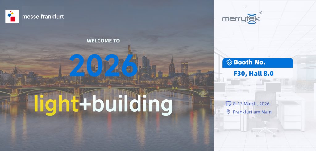 On March 8th, the biennial Light+Building Frankfurt International Exhibition (hereinafter referred to as “the exhibition”) will grandly open at the Frankfurt Exhibition Center in Germany! Merrytek will showcase its full range of products at Booth F30 in Hall 8.0, presenting multi-scenario intelligent lighting application solutions to global visitors.