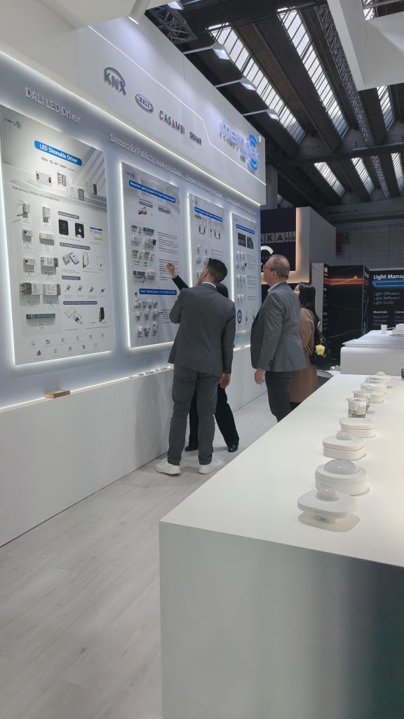 The exhibits cover a series of 12m/15m high installation sensors, networked wireless control sensors, DALI NFC dimming drivers, ultra-high depth dimming drivers, emergency power supplies and other types of products. They optimize the installation structure, are compatible with various types of lamps, and meet the needs of various industrial/commercial lighting scenarios such as smart offices, warehouse automation, and parking lot lighting.