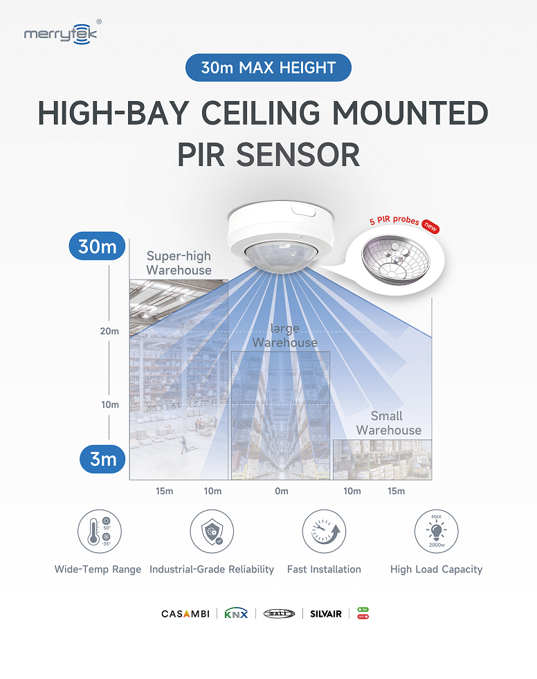 The Lifebeing sensor product line focuses on multi-scenario intelligent control applications. Merrytek has made a new classification based on the product’s functional characteristics. Among them, the flagship product at this exhibition – the wide-range SW (Super Wide) series MSA069S IR, has expanded the sensing radius to 18 meters; the high installation SH (Super High) series MSA250S IR has achieved a remarkable breakthrough in installation height, reaching 30 meters.