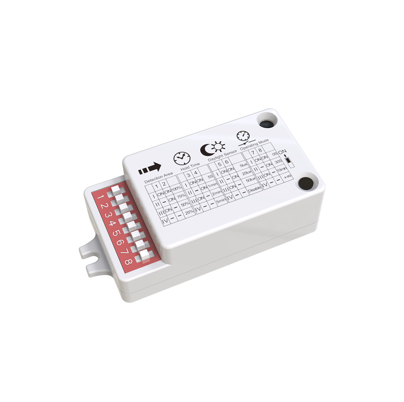 Detection Area: 100%, Hold Time:5S ,Stand-by period:0S , Stand-by dim level:20%, Daylight sensor: Disable