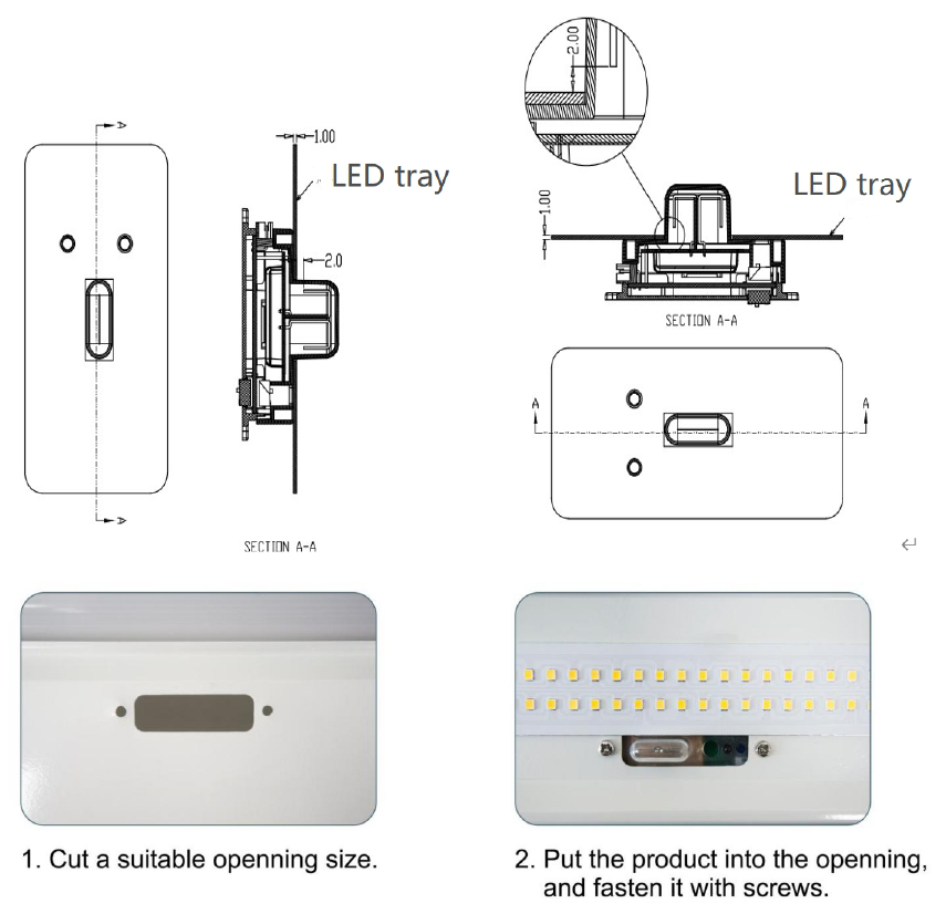 Note: Sensor antenna should be above LED tray at least 2mm.