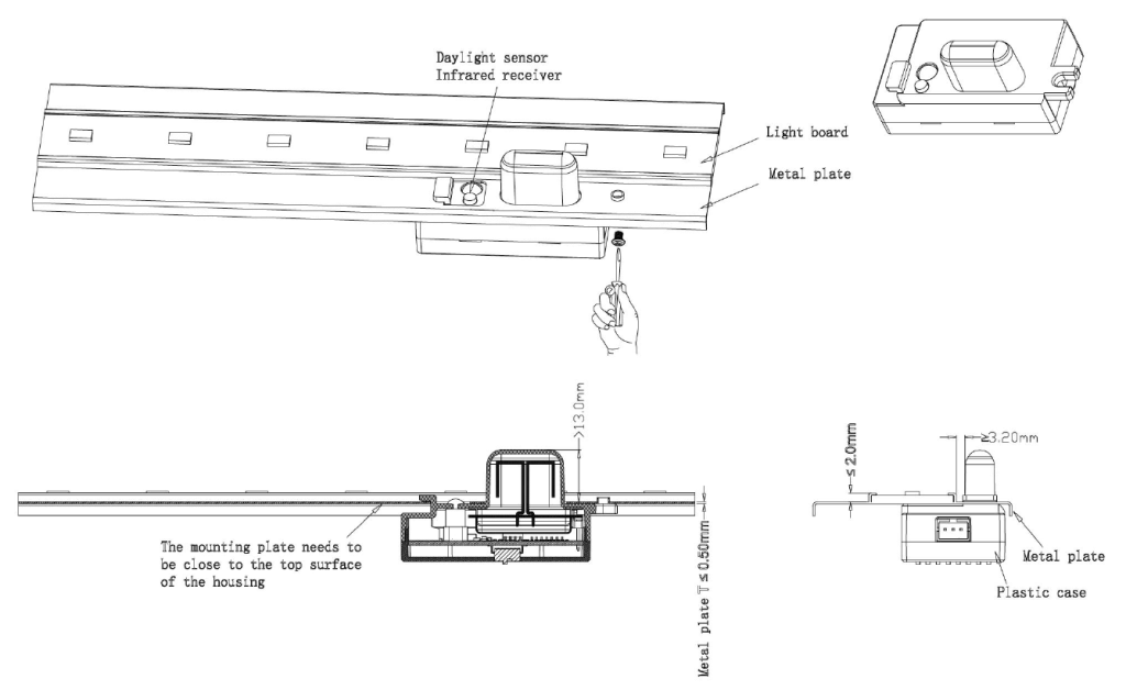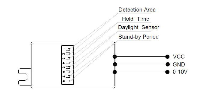 Daylight Sensor | Daylight Sensor | Daylight Threshold—— DIP: 5Lux/15Lux/50lux/Disable Remote: 5Lux/15Lux/30Lux/50lux/100Lux/150Lux/Disable |