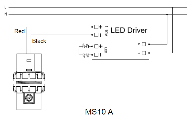 Dimming  mode Lead connection: red is the positive pole of port 1-10v; black is the negative pole of port 1-10v