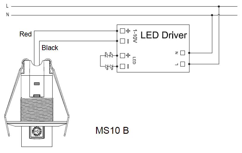 Dimming mode | Lead connection: red is the positive pole of port 1-10v; black is the negative pole of port 1-10v | |