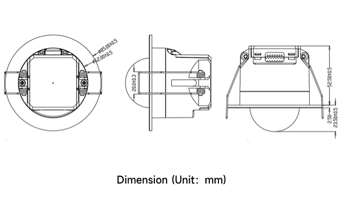 • Detection area,hold time and daylight threshold can be set by remote/DIP switch