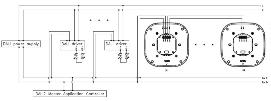 1. In dali bus circuit,we suggest wire layout shall not exceed 300m,and dali driver device not exeed 64pc, our sensor not exceed 16pc to guarantee normal communication.