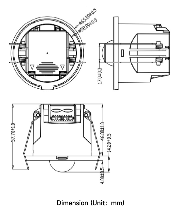| Radius detection range(based on 100% sensitivity) | 2.5-4m @25℃ based on 3m mounting height | |