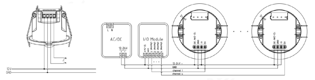 When power on,our sensor will enter self-checking mode and will not respond to any motion movement for 10s,within when K1 K2 terminal will be conducting. After 10s,our sensor will detect if there’s movement trigger. If no movement detected,K1 K2 terminal will disconnect,if movement detected, K1 K2 terminal will remain conducting until no movement detected and hold time passed.All sensor parameter such as detection range,hold time etc can be set by remote.