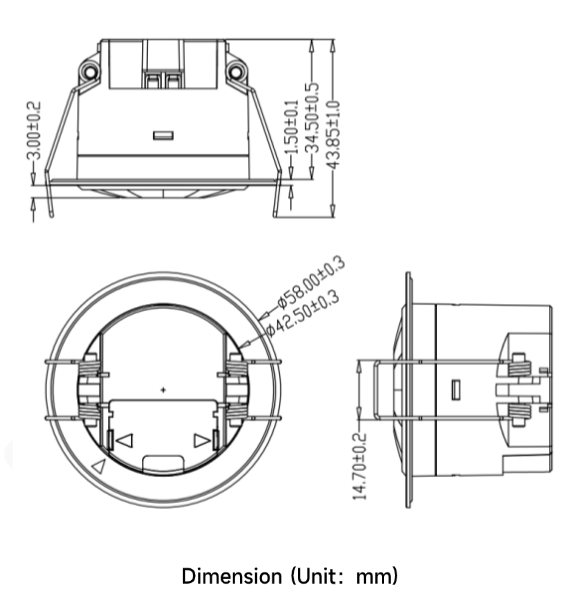 | Radius detection range(based on 100% sensitivity) | Tangential moving based on 3m high installation: 4-5m @25℃(radial moving detection range will shorten) | |