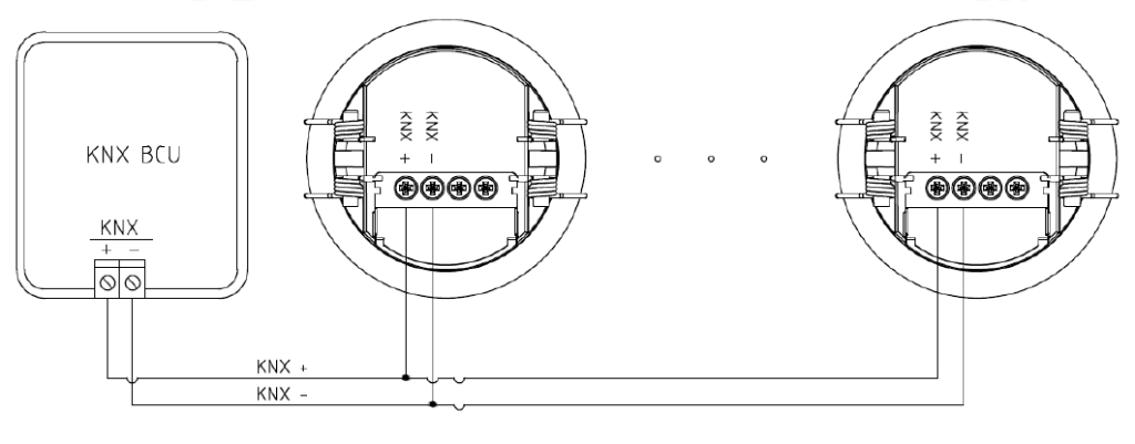 2. KNX bus wiring wire recommends KNX standard EIB shielded wire or Category 6 network cable, the length of the bus wiring is recommended not to exceed 400 meters, and the number of sensor connected to a bus is recommended to not exceed 12.